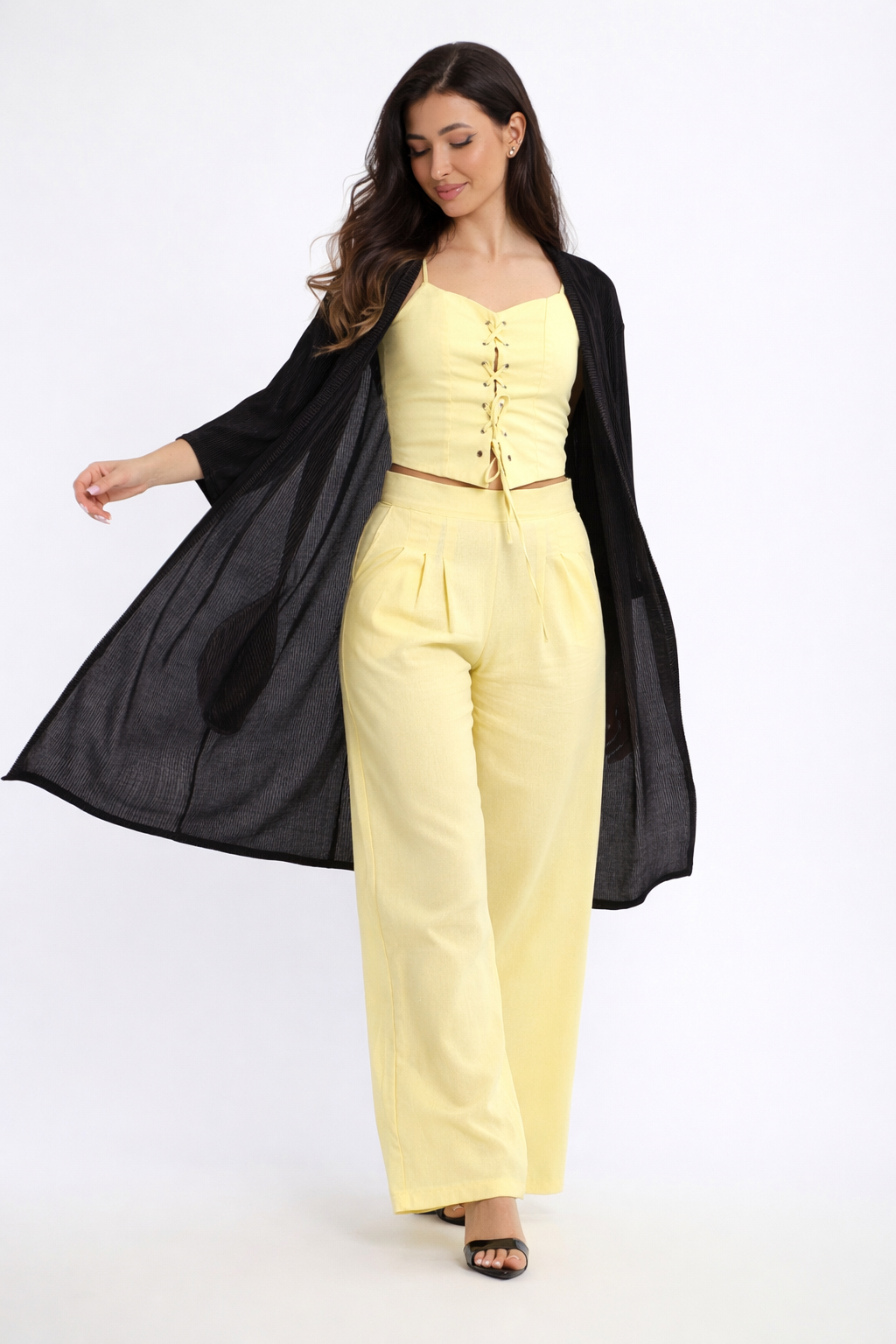 Кардиган выполнен из легкого струящегося материала — атлас гофре, который красиво драпируется, создает мягкие складки и обеспечивает комфорт на протяжении всего дня. Ткань приятна к телу и отлично подходит для любого сезона — от прохладного лета до межсезонья и зимы.