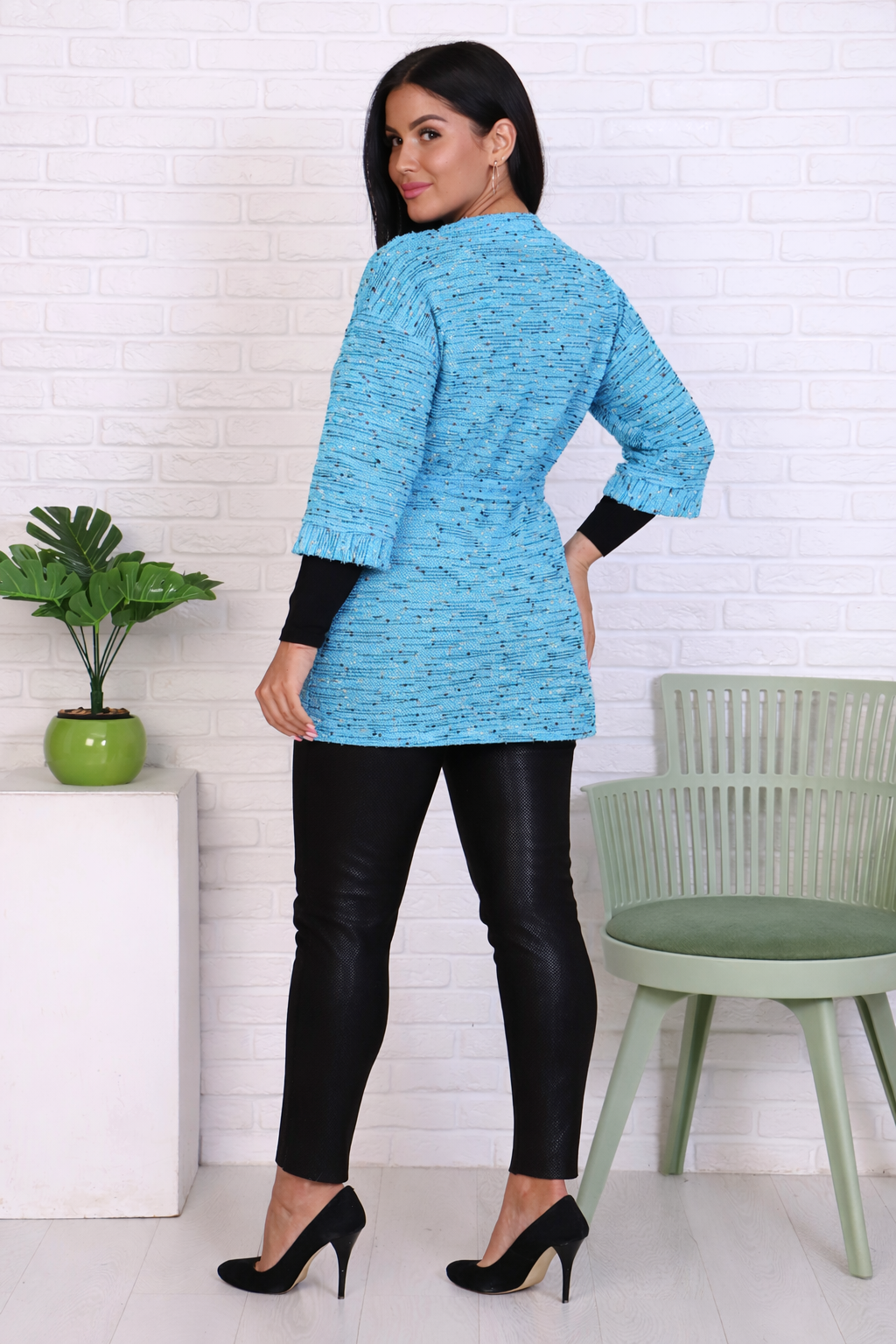 Стильный жакет из мягкого трикотажа БУКЛЕ с цветными вкраплениями. Модель свободного кроя с глубоким вырезом, передние полочки, накладные карманы и рукав гармонично оформлены широкой планкой, его можно носить как с поясом, так и без него. Жакет - это незаменимая вещь в гардеробе каждой современной девушки. Его простой крой, необычный, универсальный дизайн и удобный фасон не обойдут ни одну модницу стороной. Трикотаж БУКЛЕ приятный к телу, не колется.