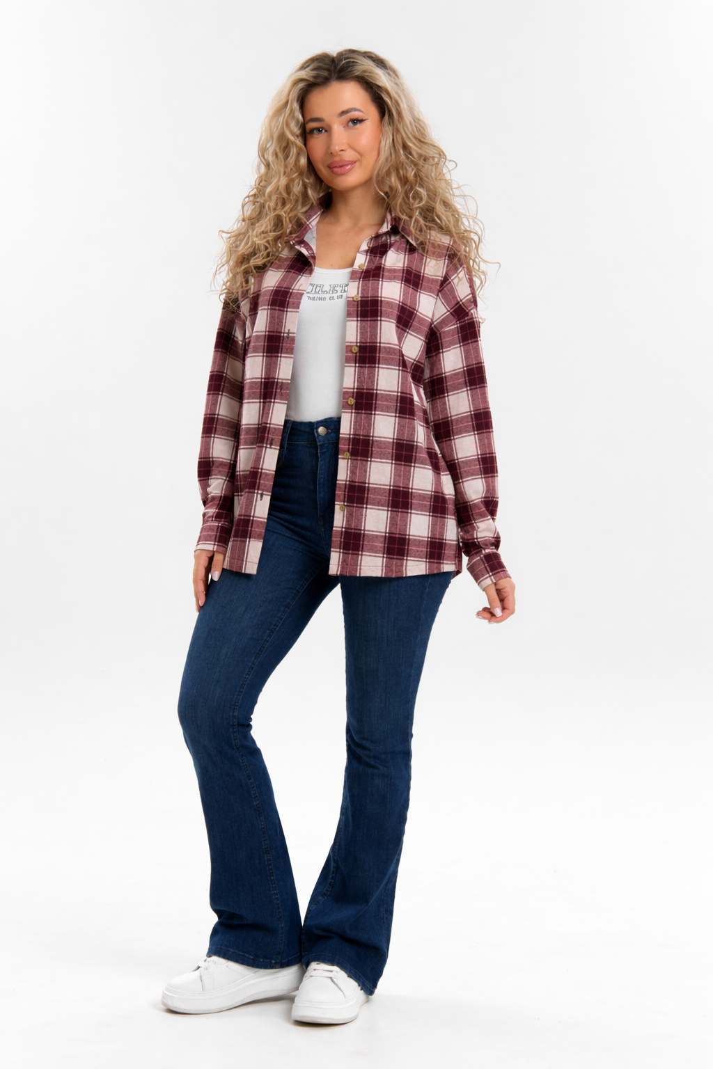 Стильная женская рубашка в актуальном oversize-крое выполнена из качественного хлопкового материала в клетку. Такая модель легко делает образ более выразительным и современным, оставаясь при этом универсальной для повседневного гардероба. Клетчатый принт — один из главных трендов сезона, поэтому рубашку лучше сочетать с однотонными вещами, чтобы сохранить гармонию в образе.